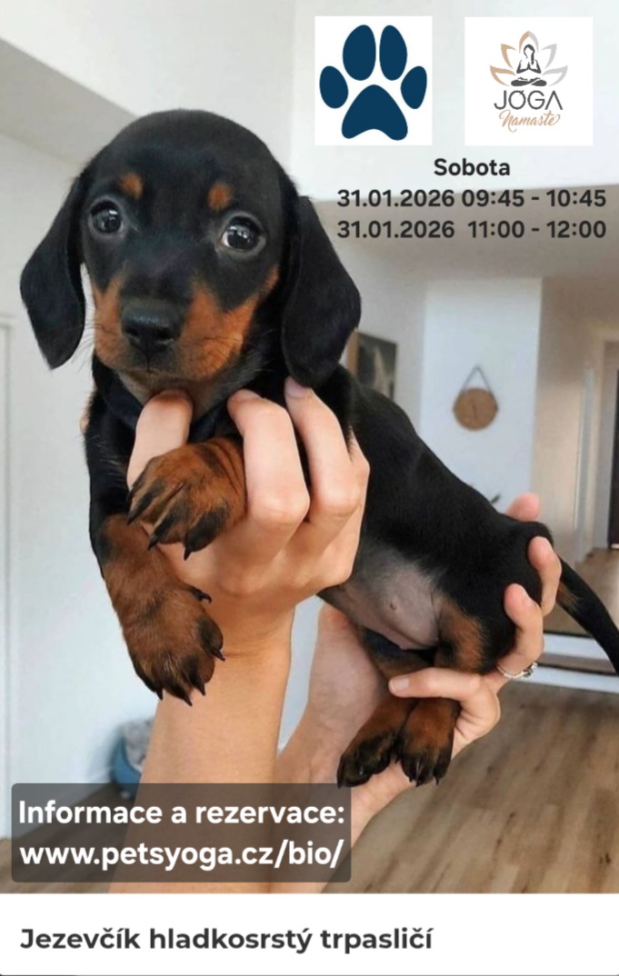 | 23.01.2026 | PETS YOGA Veškeré informace a rezervace: Připravené sobotní termíny: 31.01.2026 09:45 - 10:45 Jezevčík 31.01.2026 11:00 - 12:00 Jezevčík |