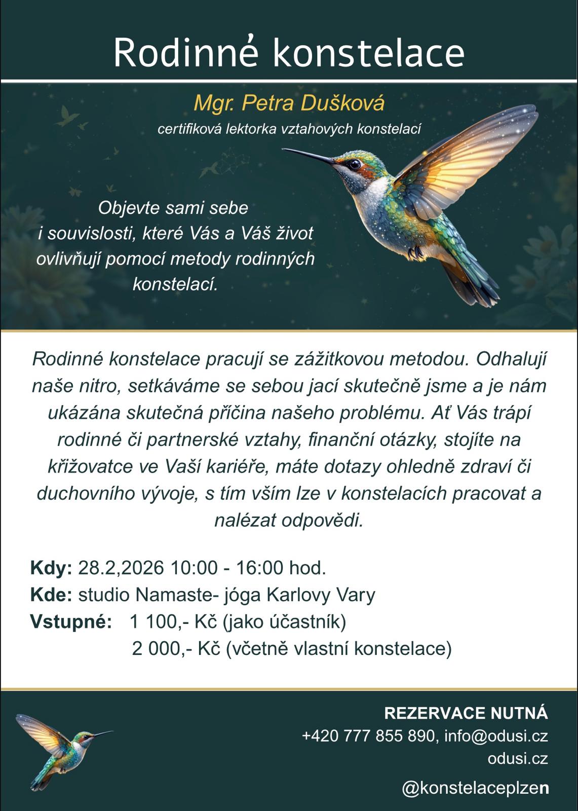 MUZIKORELAXACE Gongové a hudební lázně Terapie zvukem / Léčivé nástroje / Solfeggio · Každou sobotu 18:00-19:30 · Karlovy Vary - Jógové studio Namaste, Spojovací 123/1, Stará Role · Příspěvek: 275 Kč věrnostní, 330 Kč s permanentkou, 390 Kč jednorázový, skupinka 5 a více osob: 330 Kč/osoba. · Počet míst je omezen, rezervujte si své místo včas: https://forms.gle/B4sTvaFubKCMF5hK9 Informační letáček. |