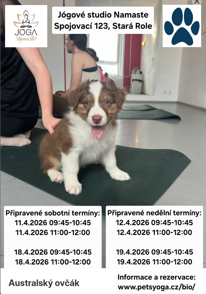 | 19.02.2026 | PETS YOGA Veškeré informace a rezervace: Připravené sobotní termíny: 14.03.2026 09:45-10:45 Leonberger 14.03.2026 11:00-12:00 Leonberger Připravené nedělní termíny: 15.03.2026 09:45-10:45 Leonberger 15.03.2026 11:00-12:00 Leonberger 29.03.2026 09:45-10:45 Leonberger 29.03.2026 11:00-12:00 Leonberger Informační letáček. |