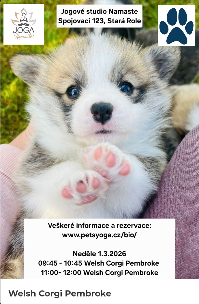 | 11.02.2026 | PETS YOGA Veškeré informace a rezervace: Připravené neděle termíny: 22.02.2026 09:45 - 10:45 Welsh Corgi Pembroke 22.02.2026 11:00 - 12:00 Welsh Corgi Pembroke Informační letáček. |