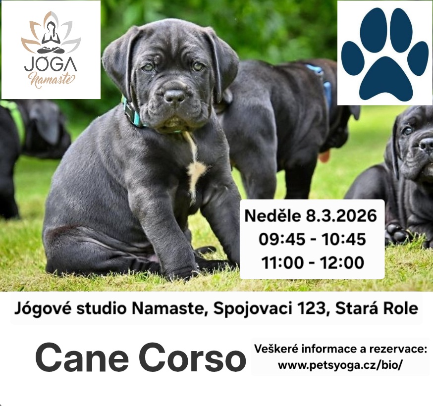 PETS YOGA Veškeré informace a rezervace: Připravené neděle termíny: 8.3.2026 09:45 - 10:45 Cane Corso 8.3.2026 11:00 - 12:00 Cane Corso Informační letáček. |