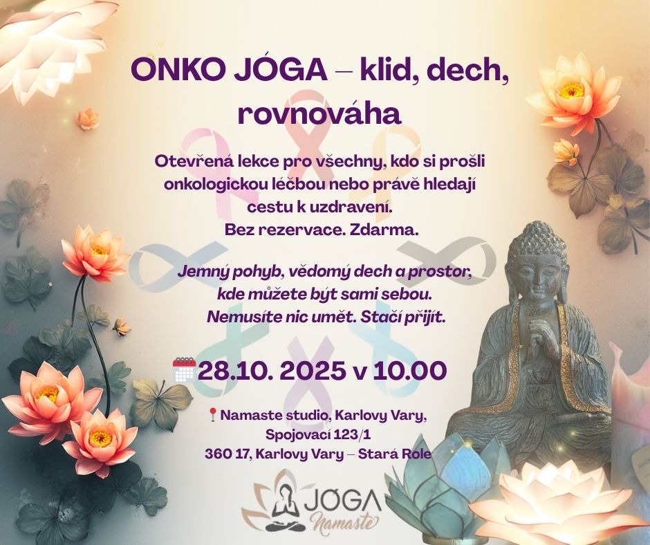 22.10.2025 | ONKO JÓGA 28.10.2025 Rezervace: Recepce Jógové studio Namaste jogovestudionamaste@gmail.com tel.: 606856842 (POUZE SMS 9:00-19:00) Informační letáček. |